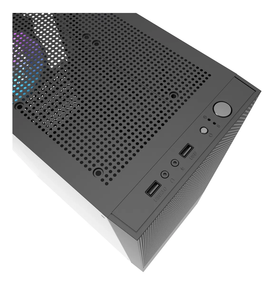 Su panel frontal completamente mallado mejora el flujo de aire interno, manteniendo temperaturas estables incluso en configuraciones exigentes.