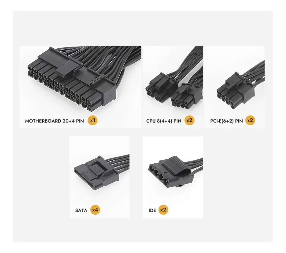 Equipada con ventilador FDB de 120 mm, condensadores japoneses 105°C y PFC Activo, mantiene un equilibrio entre refrigeración eficiente y funcionamiento silencioso. Sus cables planos negros facilitan una gestión limpia dentro del gabinete.