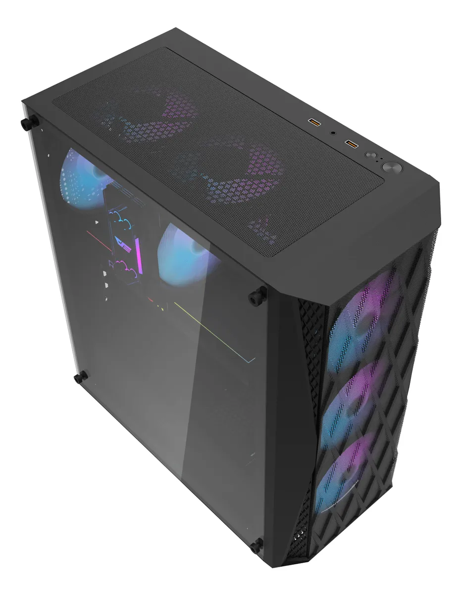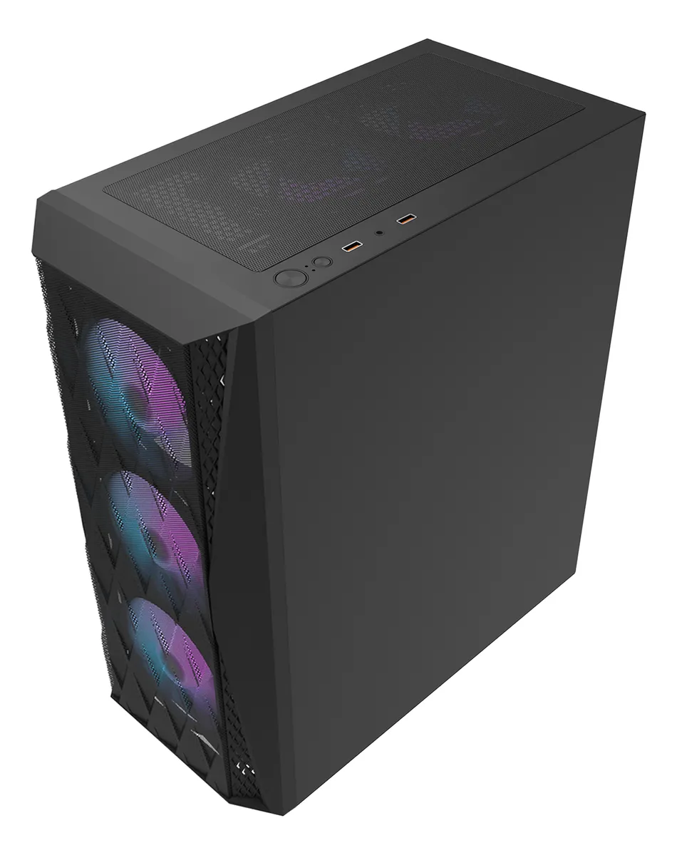 Incluye 4 ventiladores RGB preinstalados (3 frontales + 1 trasero) que garantizan una iluminación uniforme y flujo de aire óptimo.
