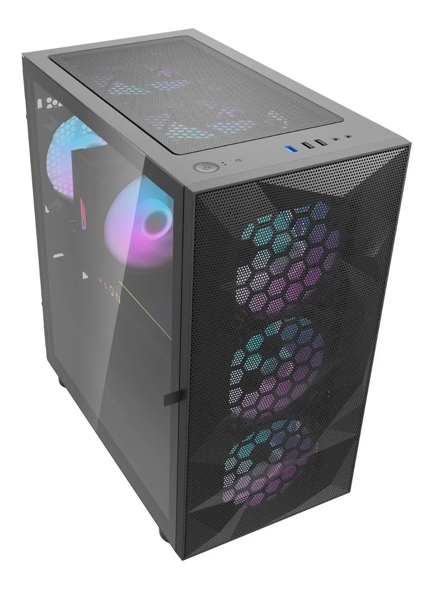 Su panel frontal mallado garantiza una entrada de aire constante, mientras que el panel lateral de vidrio templado abatible permite un acceso rápido y una vista limpia del interior.
