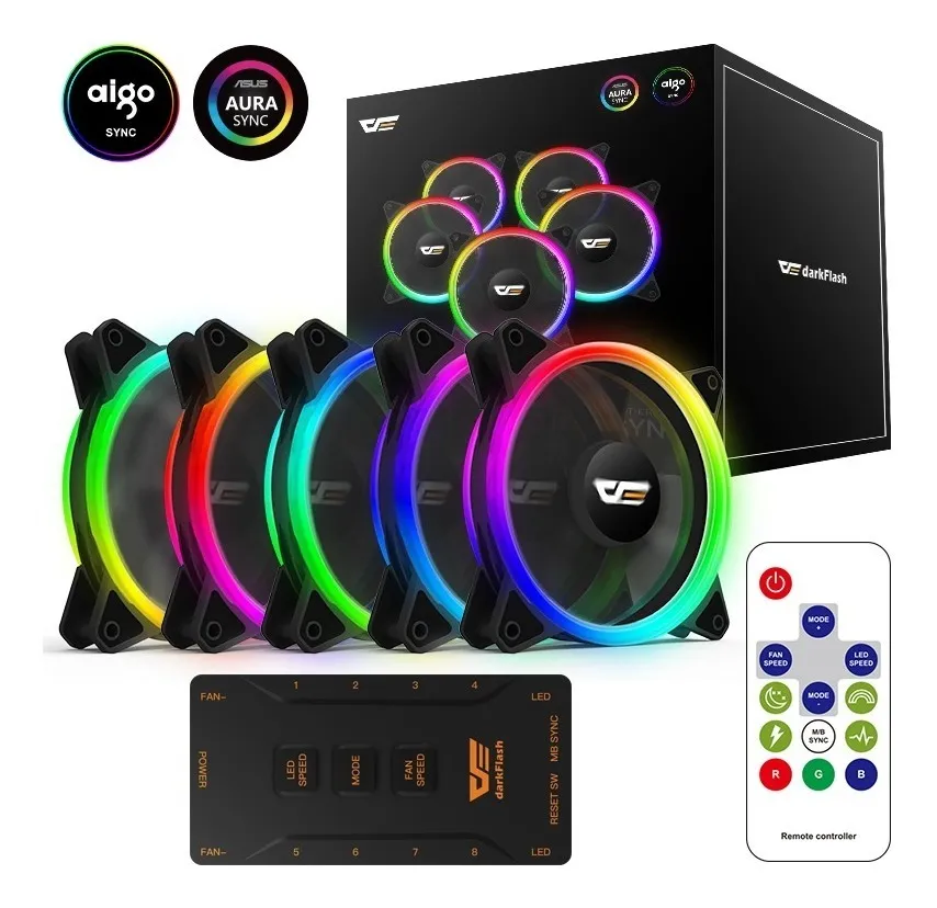🌀 Kit de 5 Ventiladores DarkFlash DR12 Pro RGB 120 mm PWM + Hub