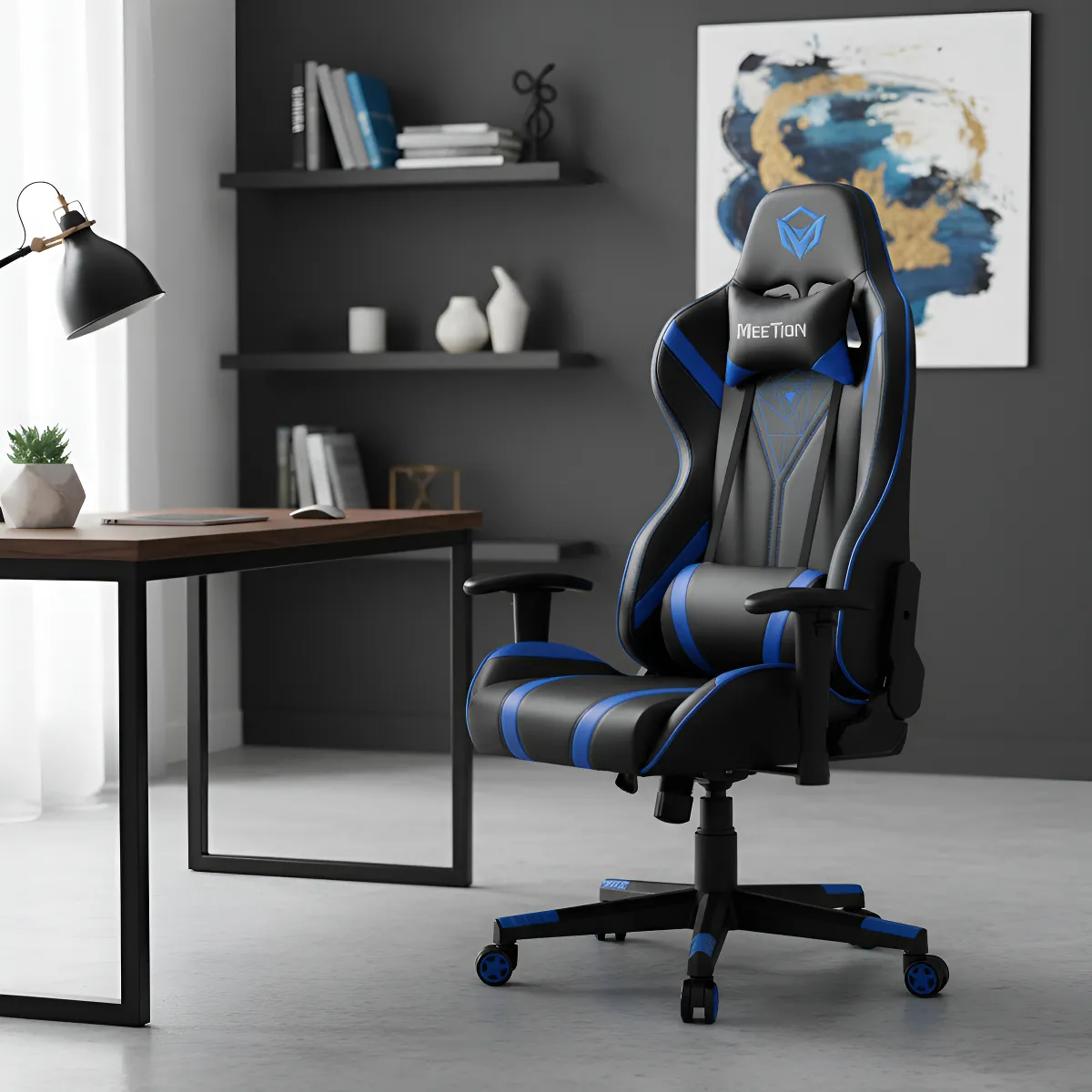 La Meetion CHR15 ofrece un diseño envolvente con tapizado de cuero sintético, cojín lumbar regulable y almohada para la cabeza. Su respaldo reclinable de 90° a 180° permite un ajuste total según tu postura, ya sea para trabajar, jugar o descansar.