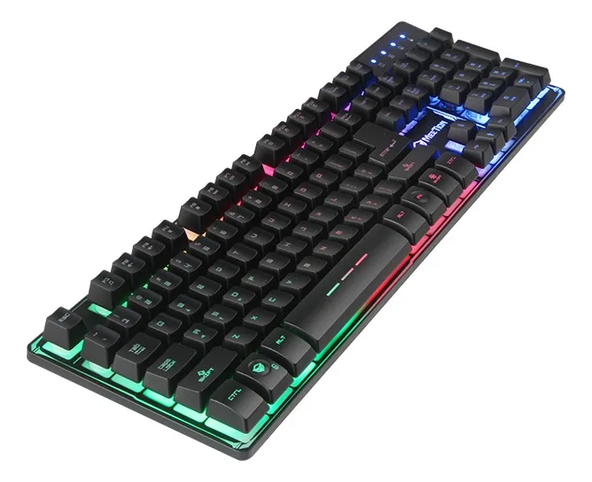 Teclado gamer con retroiluminación LED y sistema anti-ghosting, ideal para jugadores que buscan durabilidad, precisión y un diseño cómodo de tamaño completo.